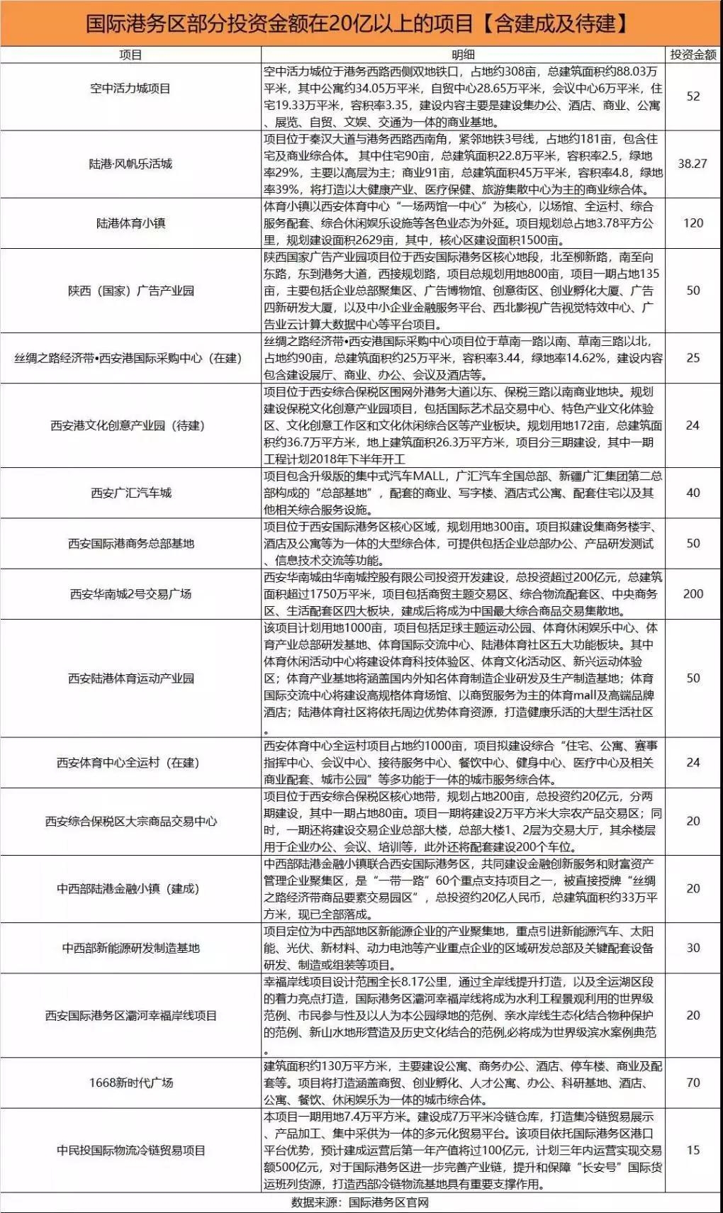 以下为国际港务区投资金额在20亿以上的部分项目