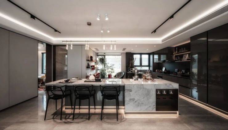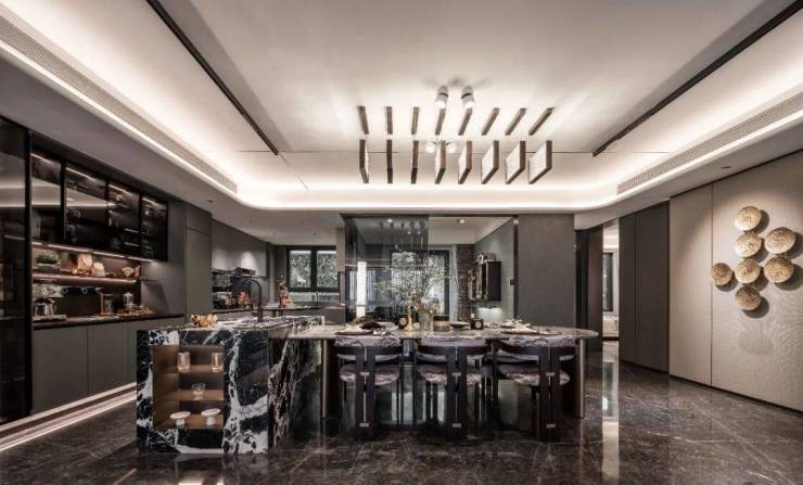 LDKB一体化方厅的存在,优化了居家动线与空间结构,使各自独立的空间连接为一个充满阳光与欢乐的聚场,让一家人尽享活力奔放的场景,不再只停留在“起居空间”;基于现代生活之上的中西双厨空间,让中厨的烟火气与西厨的浪漫感合二为一,调和生活趣味,匹配家庭成员多样的味蕾需求。