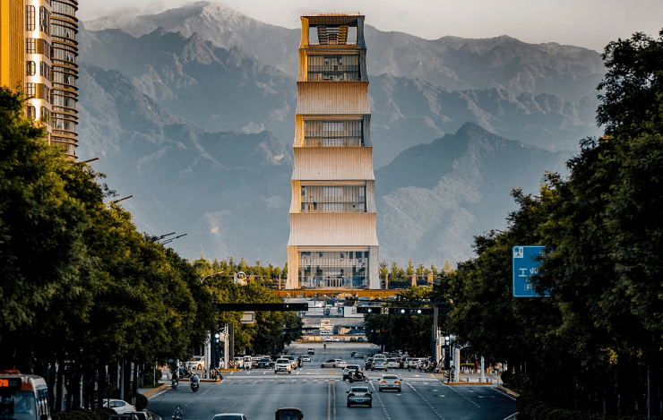 招商雲山間的公建立面设计灵感,来自于航天这片热土的DNA。用航空航天产业硬朗对称的工业设计美学,融入国际先进折叠建筑设计手法,从而做出如同千纸鹤般轻盈又艺术感爆棚的高颜值立面。