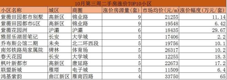 2023年43周西安二手住宅均价环比上升0.73%,本周涨价房源占比为7.45%,相比上周占比扩大!下面一起来看看二手房涨价的排名前10的小区下面一起来看看二手房降价的排名前10的小区10月第三周二手房降价T…
