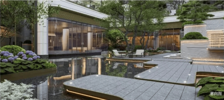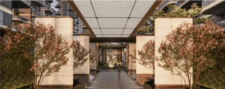 项目园区景观由山水比德顶尖团队执笔,承袭千年传统文化,营造现代山水书院意境,打造一环一核两轴四境书礼主题归家仪式,步入45米酒店式落客大门、迎宾水院,风雨回廊、下沉景观庭院,打造无雨归家礼序,形成多重院落空间层层递进,轴线对称的空间格局,匹配塔尖圈层的品味与审美,让秩序、尊崇与逸境的体验恰当彰显。
