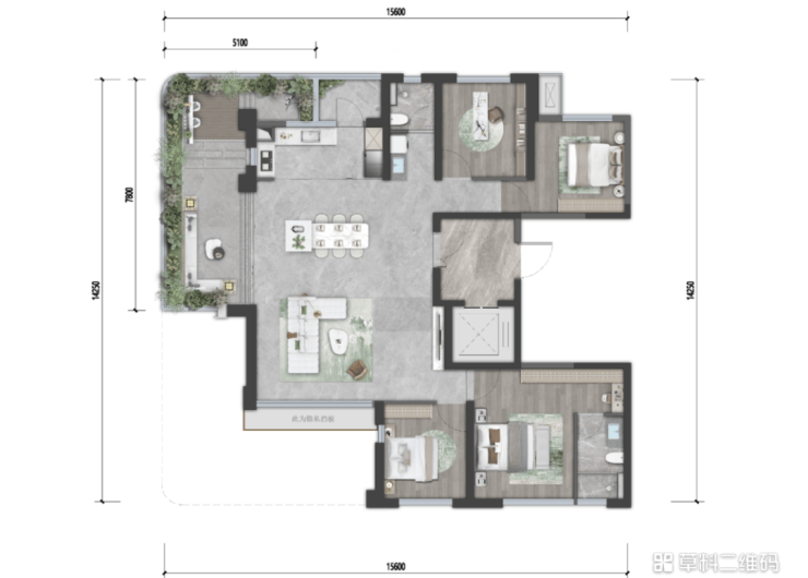 【建筑面积约140㎡丨四房两厅双卫】