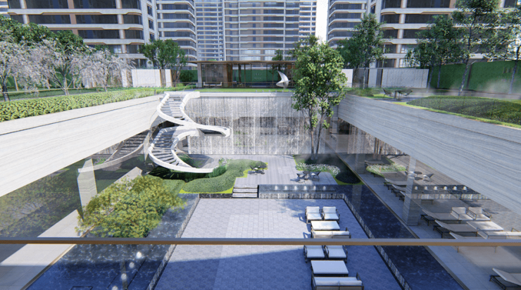 社区内配备了独享多功能城市会客厅、共享书吧、下沉式社区共享空间等。以及西南侧自建的独立商业,静谧的社区生活与繁华的购物商场分离,何尝不是高端人居的极致体现。