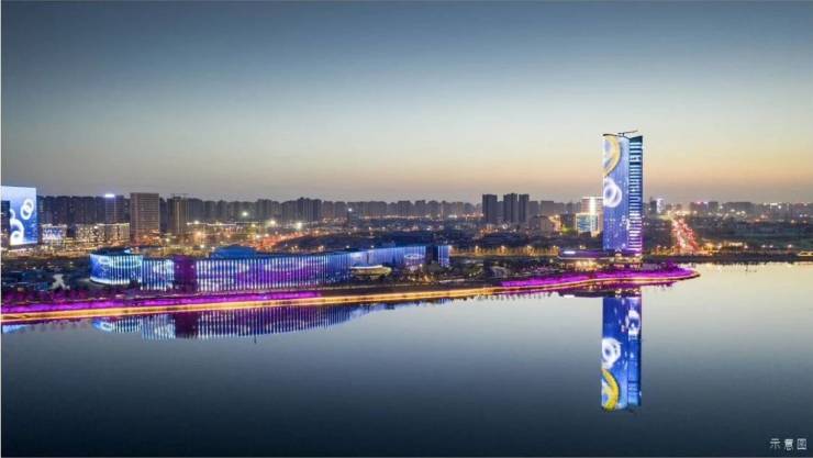 项目外立面整体采用浅米白色+浅灰色,以三段式建筑对称布局搭配棱镜美学设计、镜光水幕立面打造极简立面,顶部屋檐采用弧形塔冠设计显底蕴。中魂西技的设计手法,以现代形制结合东方底蕴,启幕世界审美的东方回归。
