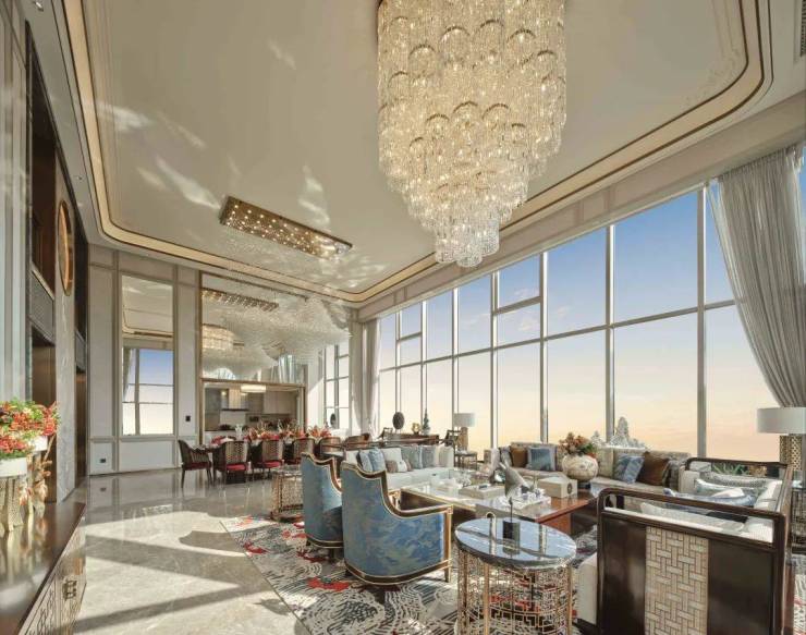 其二,颠覆传统室内建筑技术:借助钢架结构设计,项目实现了西安豪宅领域首个约6.1米双挑空设计、最大约11.5米无柱面宽,更显星河湾·星睿【天幕行宫】的非凡气魄。
