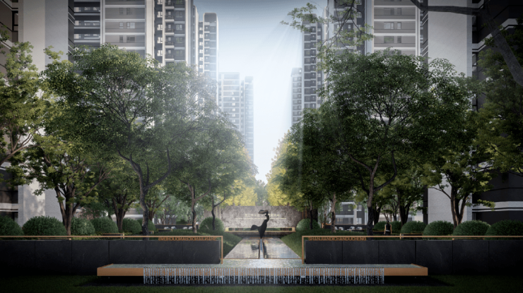 宏幅巨制的“两轴一环四心五园”景观园区,酒店式归家大堂、轴线迎宾水景、约5000㎡超大中庭景观、约700m轻氧塑胶跑道,让你在归家之时,褪去身心的疲惫,回归自然森境的原野之中,讲述“出则繁华、入则静谧”的归家奥秘。