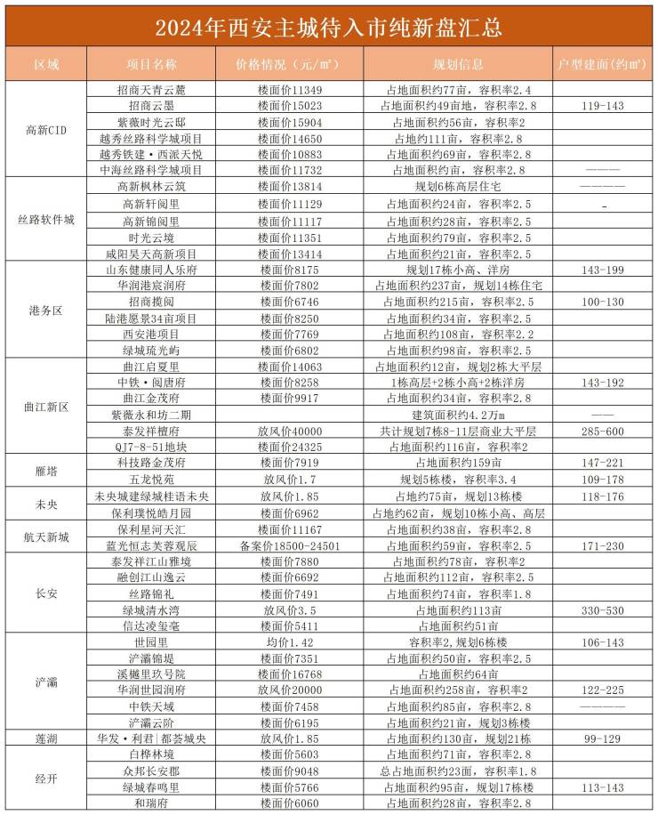 不完全统计,2024年西安主城有45个纯新盘蓄势待发。