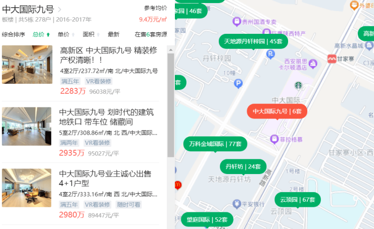 之前西安高新区的顶级豪宅,中大国际九号,也没几套挂出来的二手房。