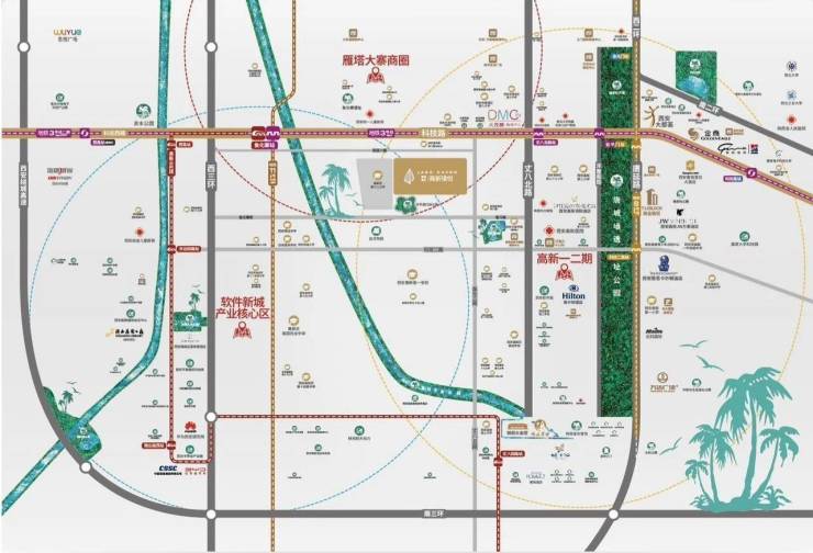 科技路沿线形成了产业园+写字楼集群效应,聚集大量500强企业和城市精英,形成了影响全城的高智国层。