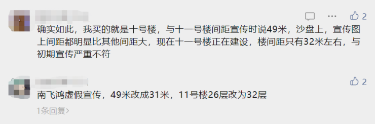 3、开发商口碑不佳,业主投诉较多。已经售罄的一期还未交房,就有业主投诉开发商私自更改楼间距,从49米改为30米,影响一期采光。