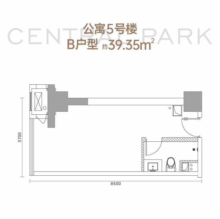 公寓7号楼B1户型37.12平米样板间效果图