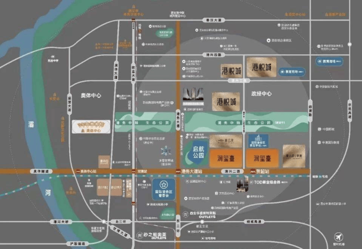 润玺臺·观月位于浐灞国际港务区港兴二路以北、融合路以西,是润玺台 二期,第四代住宅,建面约128-178m洋房。
