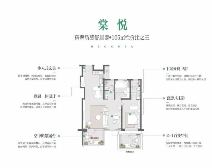 产品面积:建面约105㎡/125㎡纯四代住宅