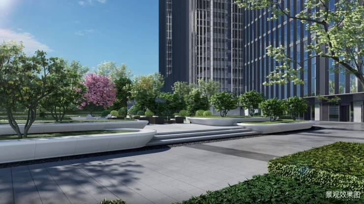 C座精心挑选优质景观植物,采用乔灌草相结合的种植模式来设计融入环境的自然之美,同时通过植物搭配打破单调平面,使得空间层级更加丰富,呈现出优雅而流畅的台地语言,让景观更具艺术观赏性,为商务人士打造一个舒适、静谧的沉浸式休闲场所。