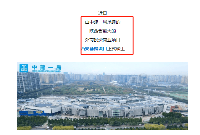 根据项目承建方中建一局官微了解到,西安荟聚项目已于近日正式竣工,并实现了北楼主体结构提前18天封顶。