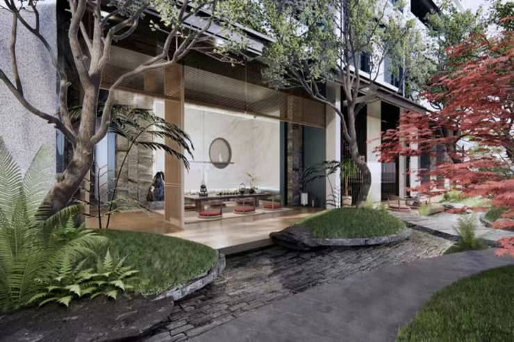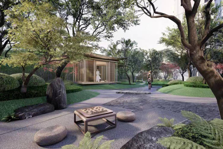 项目在园林景观的打造上,以盛唐文化做载体,采用了呼应大明宫格局的对称围合艺术,匠心打造了一轴一环三进三院五馆的全园景观结构。