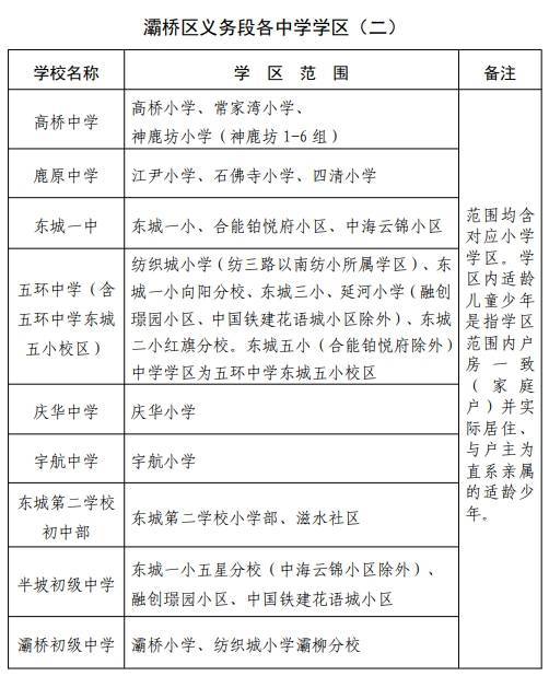 西安市(灞桥区)2024年义务教育学校学区划分方案