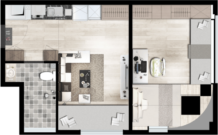 B户型:55㎡一室一厅一厨一卫