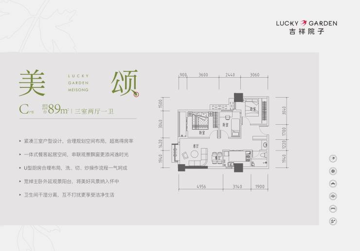 建面约78-105㎡稀缺小户型产品,以精巧户型设计和空间的合理规制,打造刚刚好的稀缺小户型。