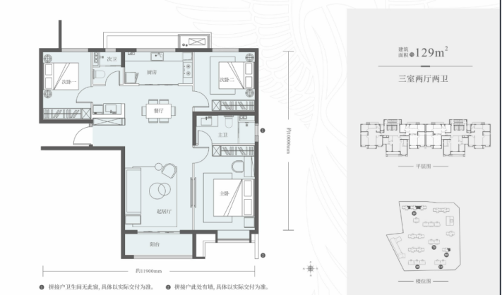 小高层主力户型为128㎡,2T2户。洋房主力户型143平米、175㎡,重点看下175㎡户型: