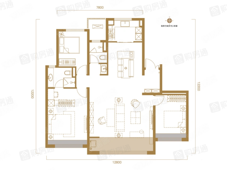 下面是3年前三室主力产品,大平层影响下,户型更方正,三开间朝南,大开间,浅进深,大横厅为主,但因为客厅空间变大后,140㎡以上才能做到大三室。