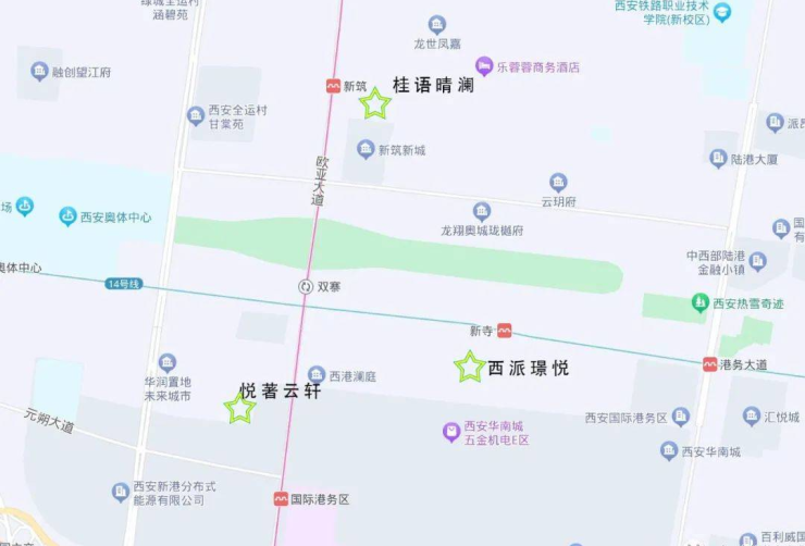 但中粮悦著云轩在欧亚大道以西,与华南城间隔有一定距离,周边也有华润置地未来城市、枫林九溪等早已入住的小区,生活环境相对较好。中铁建西派璟悦东侧与陕西师范大学陆港小学一路之隔,距离地铁14号线新寺站下约600米,在交通、教育资源上又更胜一筹,但项目南边产品的露台面对着华南城摩托车城。