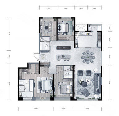 现在大家看到的是高新•天谷雅舍建筑面积约234㎡的户型: