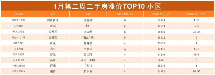 2024年1月第二周:西安二手房均价16611元/㎡!西安二手房涨跌小区排名!