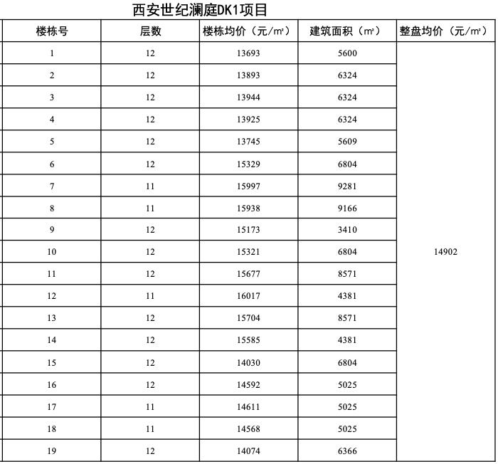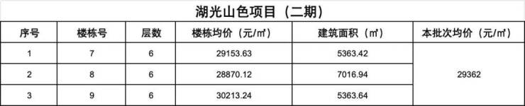 此次全盘公示,均价为14902元/㎡,均为11-12层高的洋房产品,建面约107-340㎡,楼栋均价约1.36-1.6万/㎡。