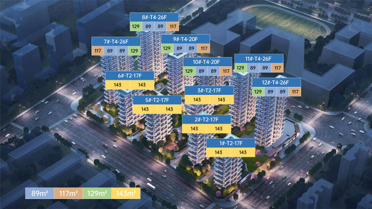 户型面积:约89㎡、116㎡、129㎡、143㎡