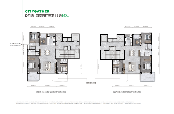 而建面约143㎡四室两厅三卫产品户型,保利云谷天汇更是近乎覆盖了所有的居住需求。