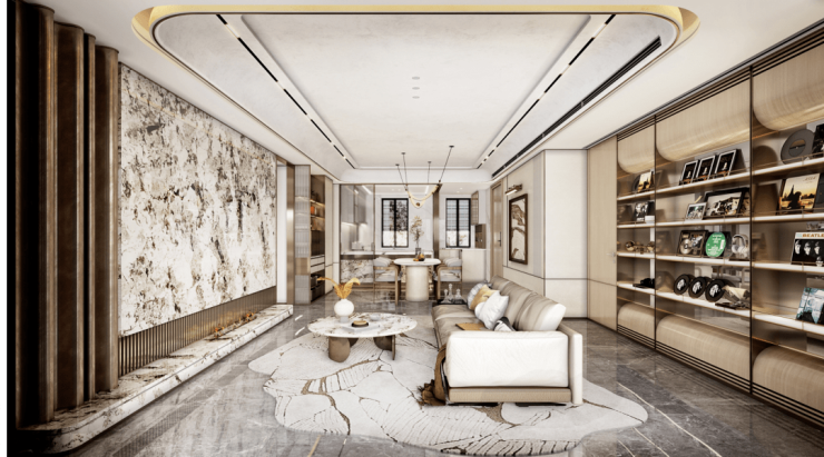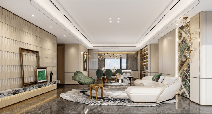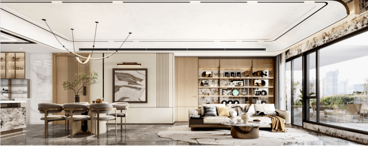 独立电梯入户所形成的“私家门厅”豪宅即视感,归家的礼序与尊崇享受感尽显。入户后的第一感觉,LDKB所形成的无界公区,南向约12米巨幕面宽,所瞬时形成的空间体验冲击力满满。