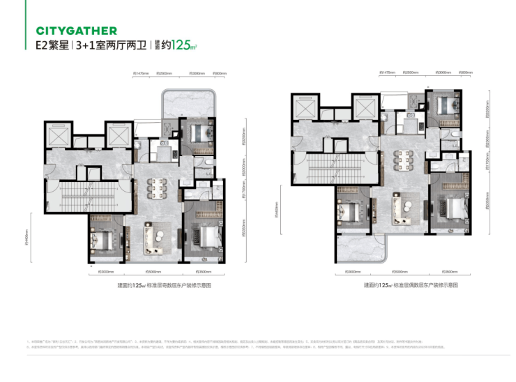 比如6#少量建面约125㎡3+1室两卫户型,对于三口之家或甜蜜小夫妻来说十分友好。