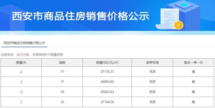 招商雲蘭2#3#5#7#幢均价区间:29263-27164元/平米,毛坯交付,具体一房一价。