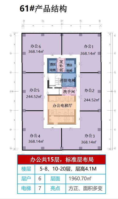 2、项目在售产品 61#整栋(5A甲写+酒店)