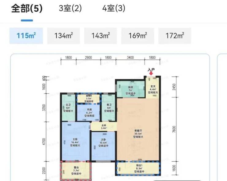 项目建面约172㎡户型就更不用说了。作为板块内目前唯一的洋房产品,入市即王炸。