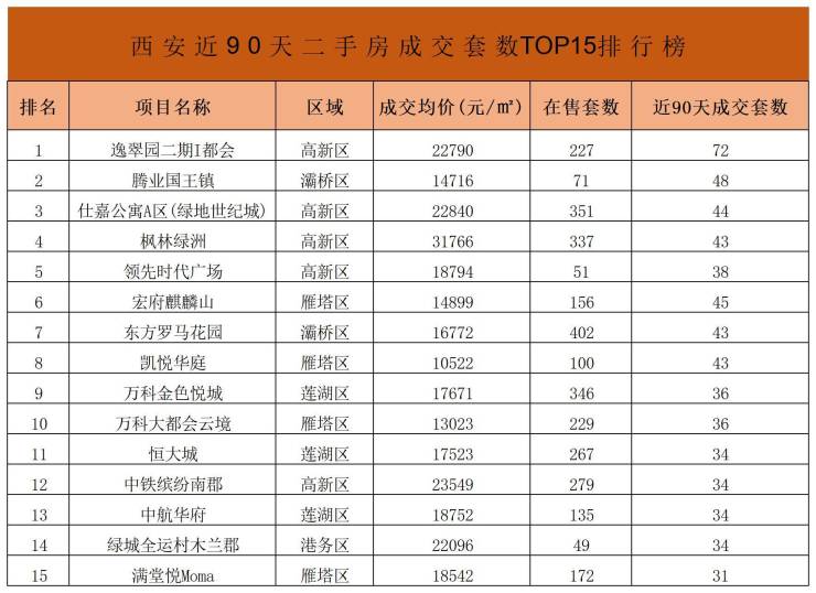最高成交92套!西安90天内二手房成交最好的小区排名出炉!