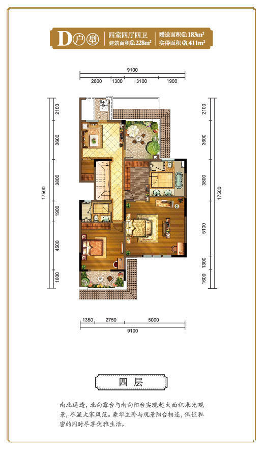 遵循传统造园手法,融合现代典雅风格,五重空间布局,集“山、林、水、院”之大成,涵养千年华章,启承传世文脉,匠造传世东方院落。生态跑道,晨跑夜跑一路花香鸟语相随;独有樱花大道辅以幽美小径,午后漫步尽享花香自然,打造愉悦社交生活圈;典雅大气水景、精致细腻植栽,纵享四季雍容。