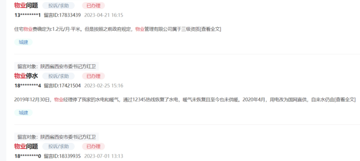 西安不少业主通过领导留言板控诉,自家小区的物业费太高了!