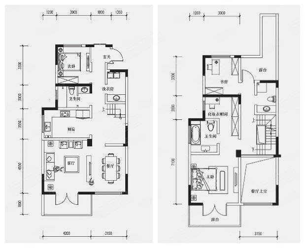 今天一起看一套195㎡的房源,该户型为三室两厅三卫设计,一楼入户即是餐客一体主厅,客厅面积开阔,餐厅上方挑空,空间感十足,会客或家人相聚都很实用。L型厨房宽敞,使用便捷。