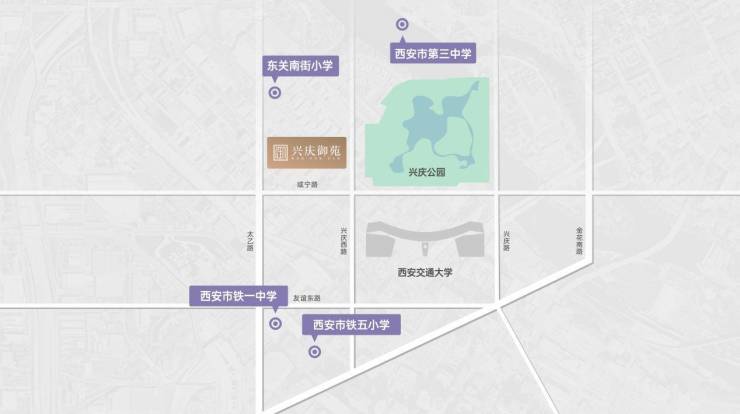 兴庆御苑位处教育价值高地碑林区,坐拥“陕西省智慧教育示范区”优教圈,西安市三中、铁一中、交大附中、铁五小等优质教育资源林立,更与百年名校西安交通大学为邻,19年教育黄金链,启迪菁英璀璨未来。