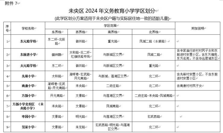 6月25日在未央区人民政府网站和未央区教育局微信公众号公布我区2024年义务教育招生入学工作实施方案和学区划分方案(见附件7)。