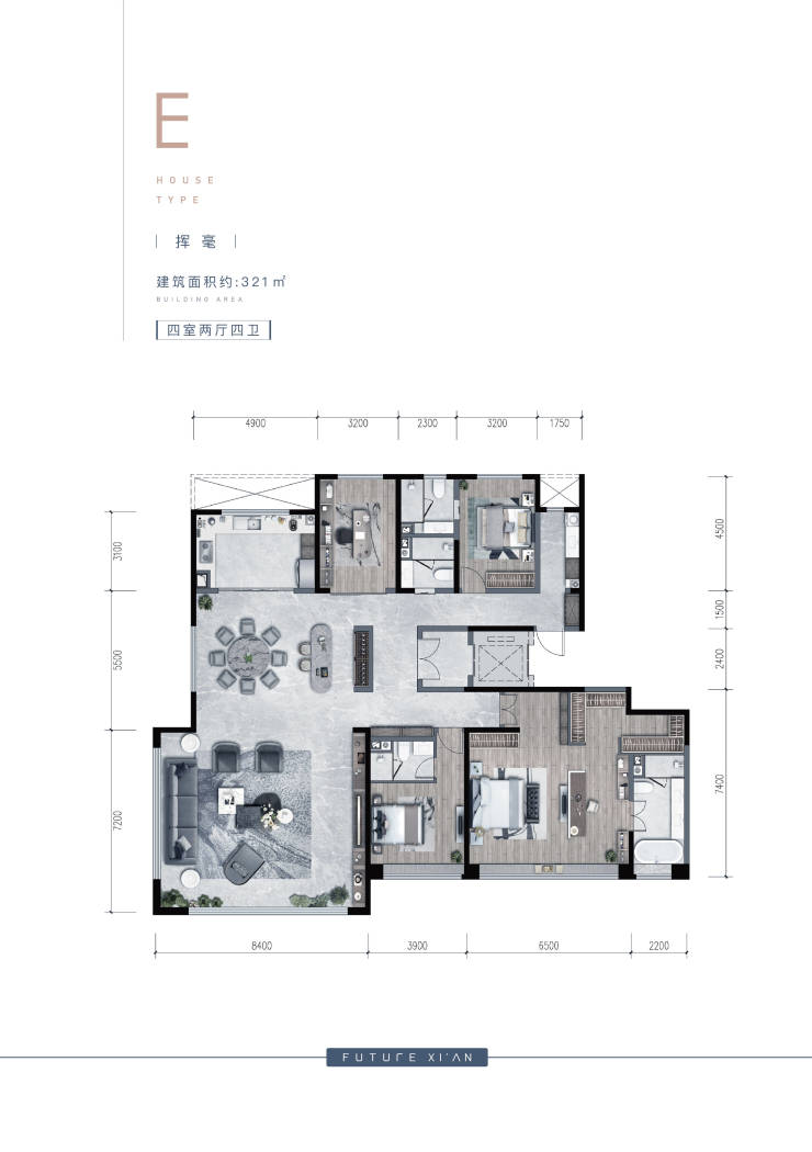 约321㎡四室两厅四卫。