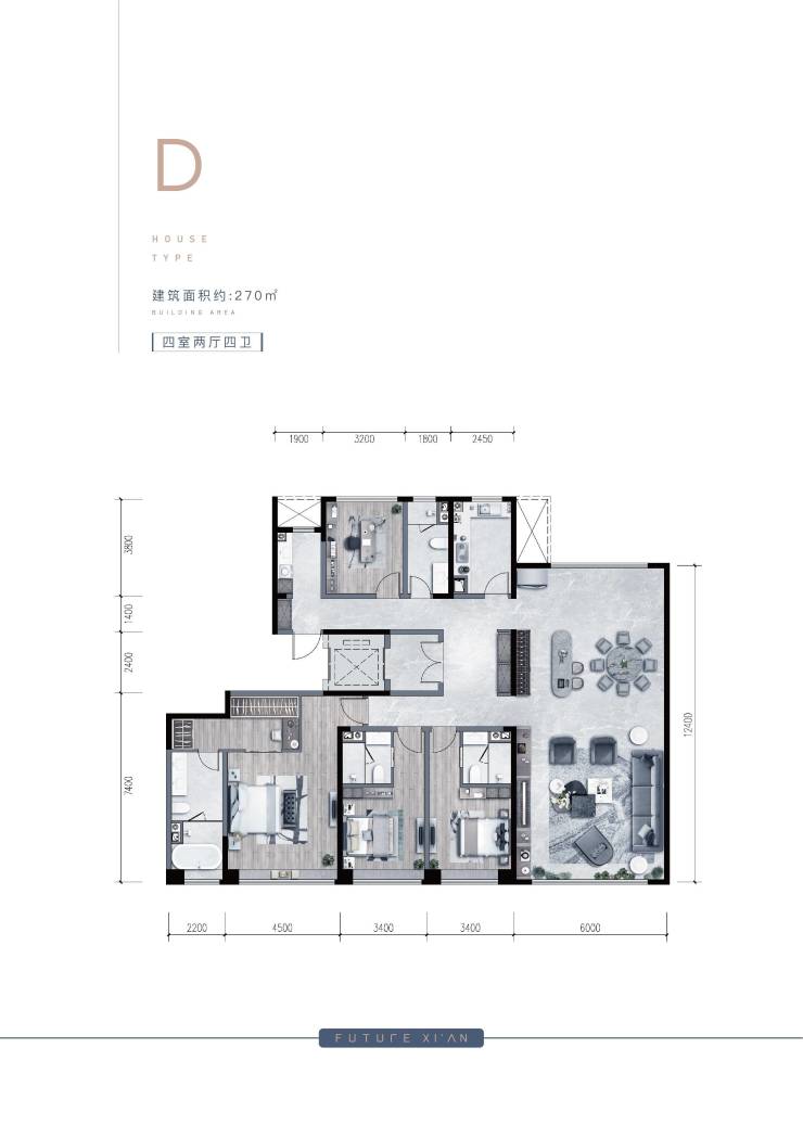 约270㎡四室两厅四卫、