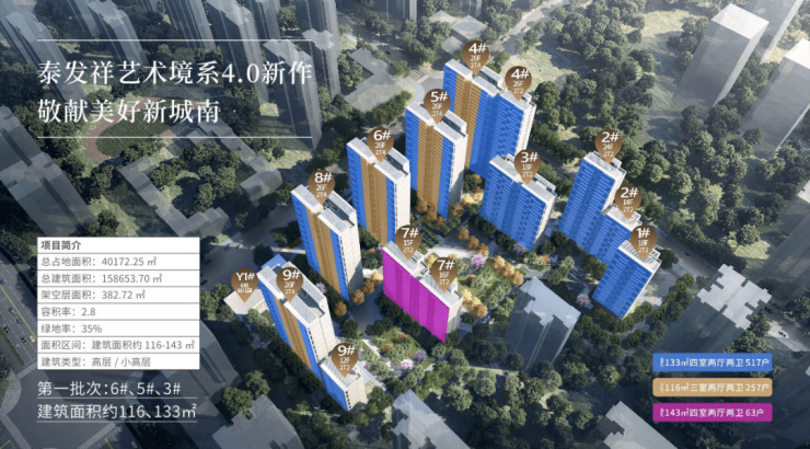 根据目前释放出来的产品信息来看,2T4的高层户型是116㎡和133㎡两种,2T2的小高层是133㎡和143㎡两种户型。