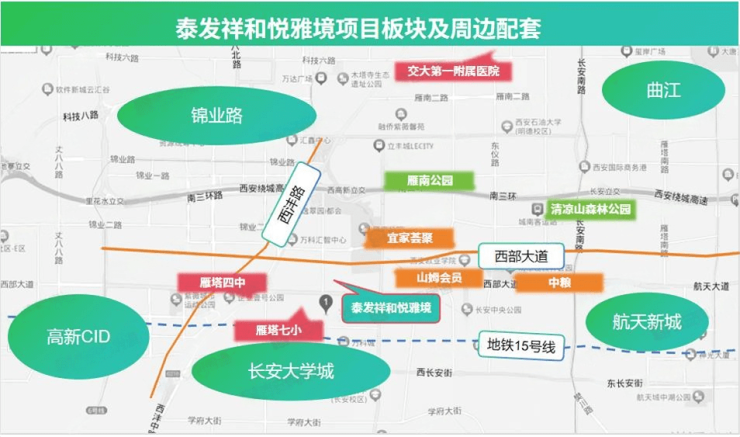 同时板块地处曲江、高新锦业路、CID、航天新城等产业聚集区,在15号线、西沣路的加持下,人口密集,就业、通勤优势明显。