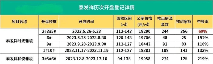这并非泰发祥首次平销,其在西安首个面世的泰发祥时光雅境,除了首开摇号外,后续3次均未摇号。