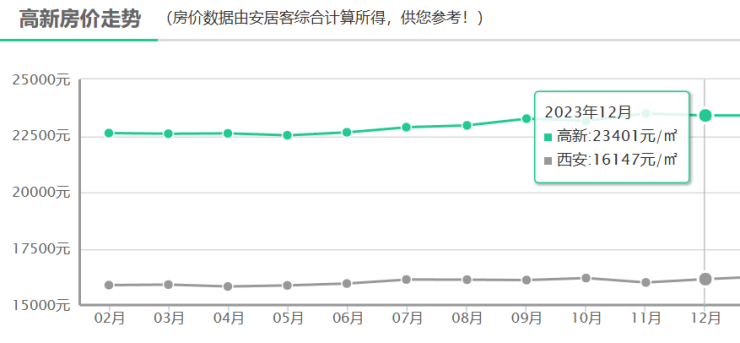 从安居客数据显示,12月西安新房在线均价16195元/㎡,环比11月(16194元/㎡)持平。