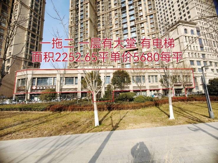 商铺三:2252.65平,一拖二,有电梯,有赠送,单价5680每平,层高4.5米,整体出售,3个房本