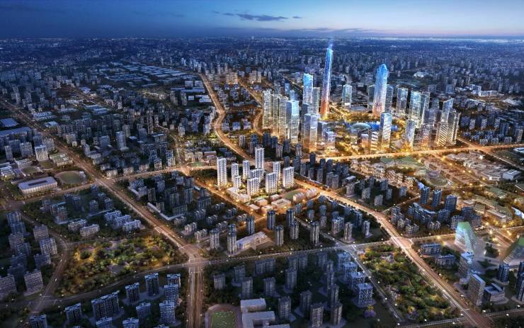 高新CID以未来之瞳为中心构筑起十字发展轴,重点打造企业总部、国际医疗、金融文化、遗址公园等9大组团,是多元化中心高地。